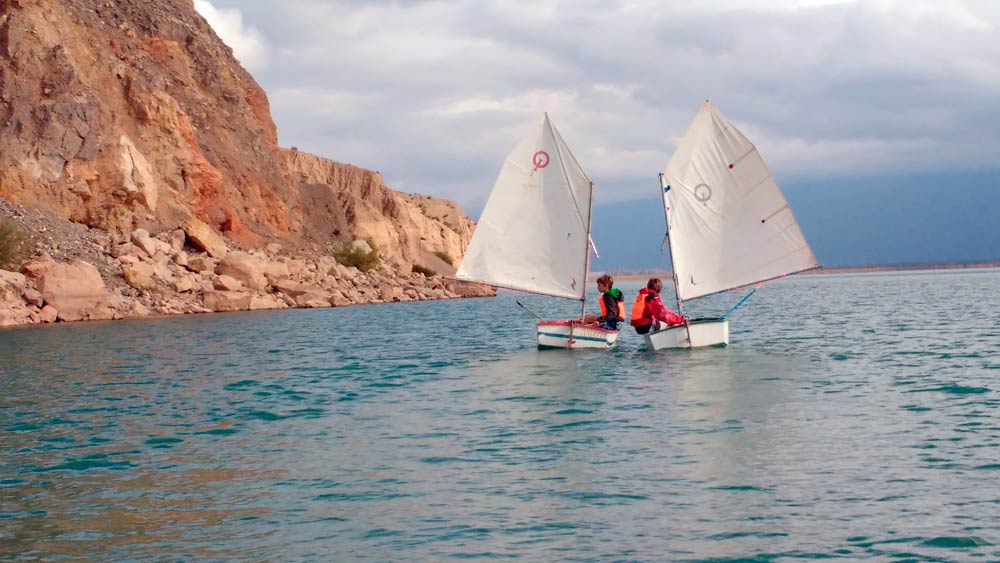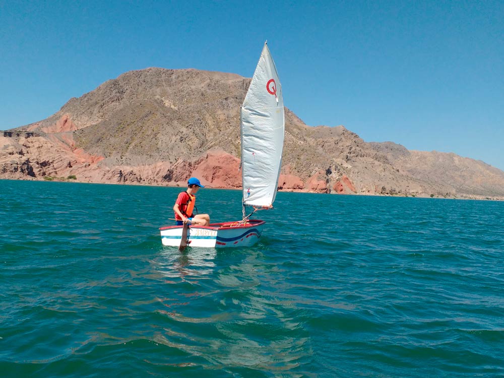 Enjoy peace, tranquility or adrenaline when sailing on sailboats on the Ullum dam, immersed in a mountain landscape with hills and incredible sunsets.